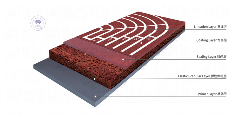 由微發泡閉孔技術的聚氨酯底膠鋪設而成,為世界田徑(國際田聯)認可推薦為各大型國際賽事運動員競賽和訓練專用場地類型,耐高低溫、沖擊吸收。
